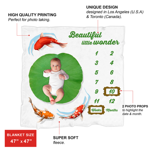 Endanzoo Baby Monthly Milestone Blanket - Flannel Fleece (Koi Fishes)