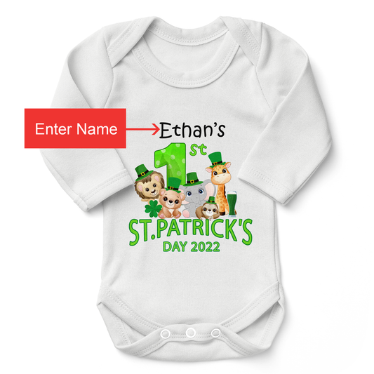 [Personalized] First Saint Patrick's Day Safari Animals Organic Baby Bodysuit
