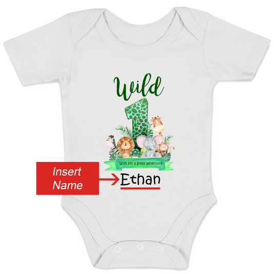 [Personalized] Wild 1 Safari Organic Short Sleeve Baby Bodysuit