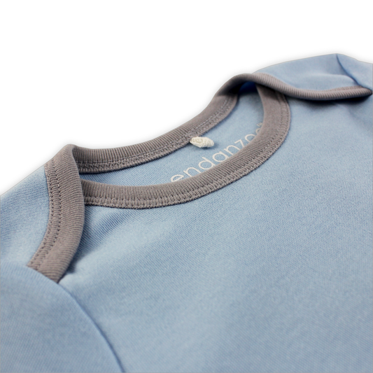 Organic Long Sleeve Bodysuit - Blue w/ grey