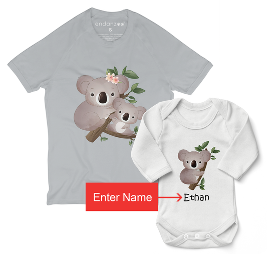 Personalized Matching Mom & Baby Organic Outfits -Koala family