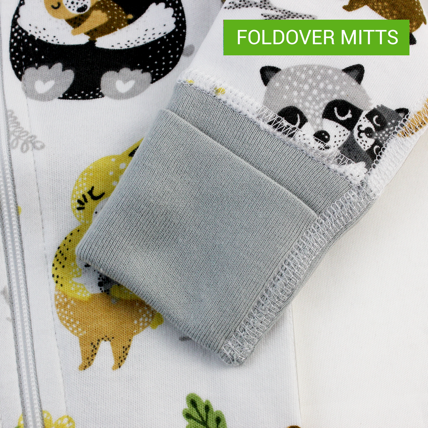 • Fold-over mitts and fold-over feet to roll up and down for the perfect fit.