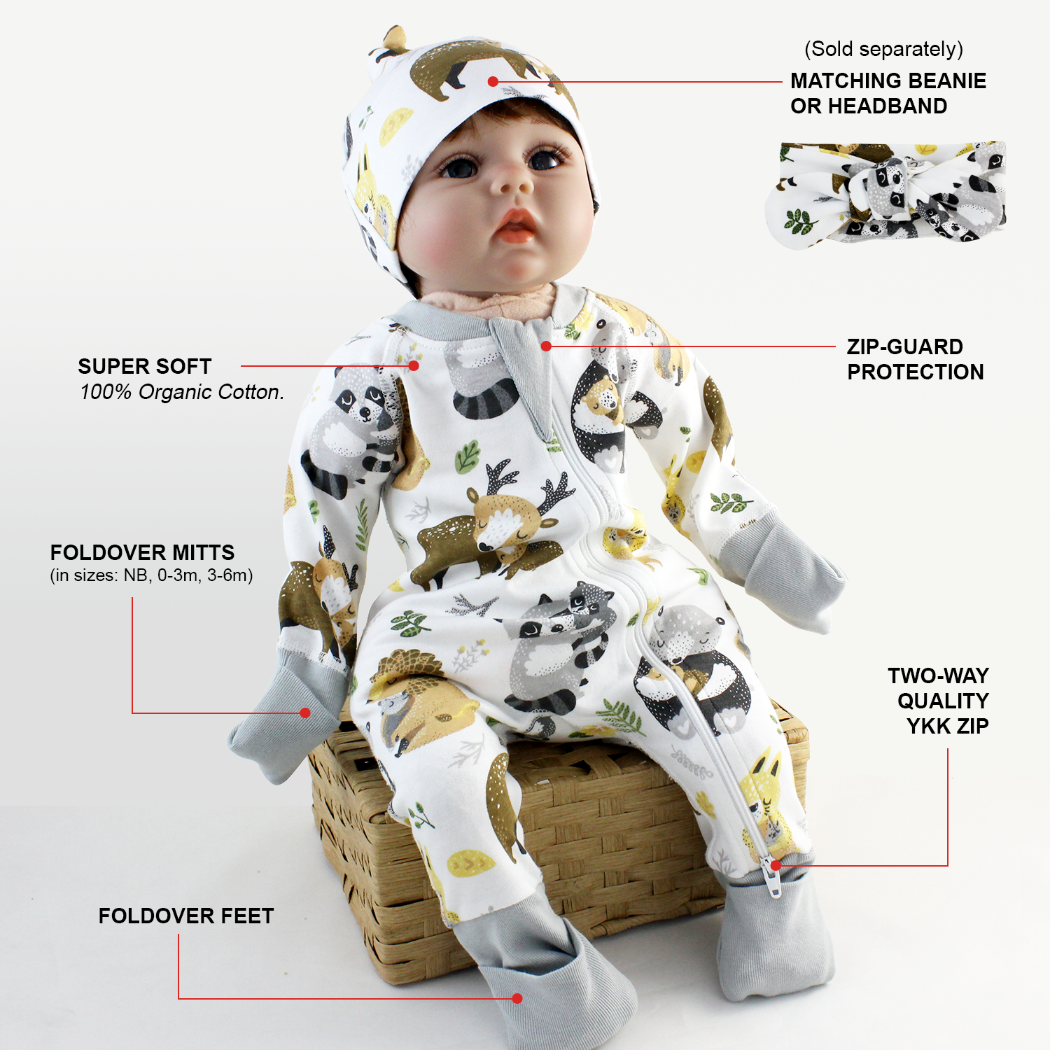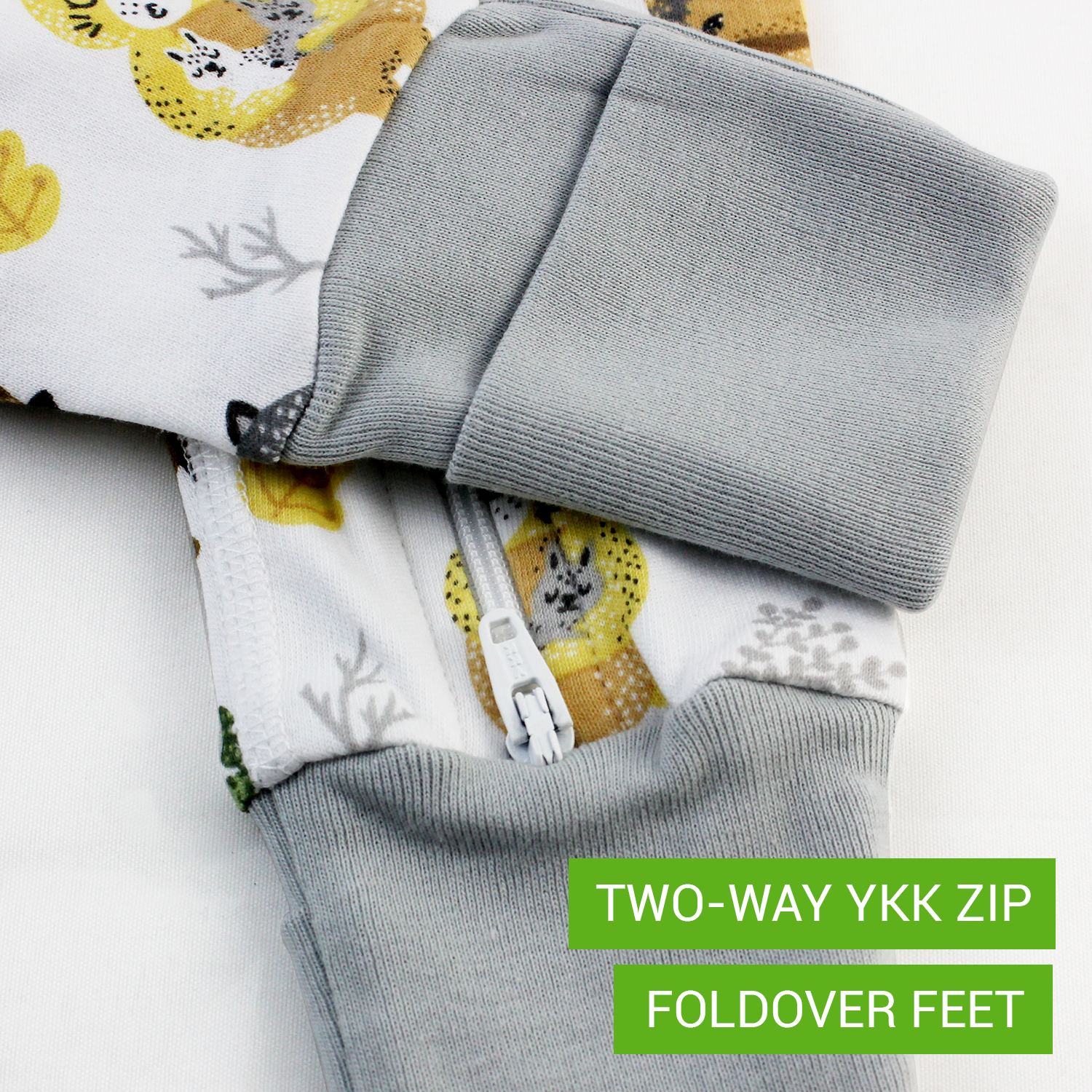 Endanzoo Organic Long Sleeve Double Zippered Romper- Safari Hugs