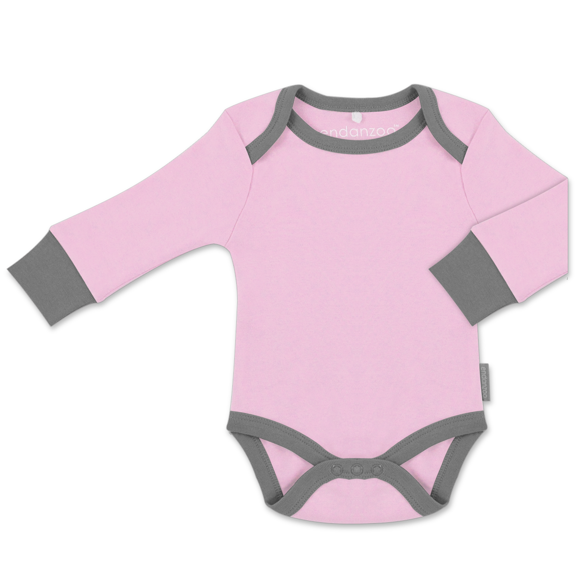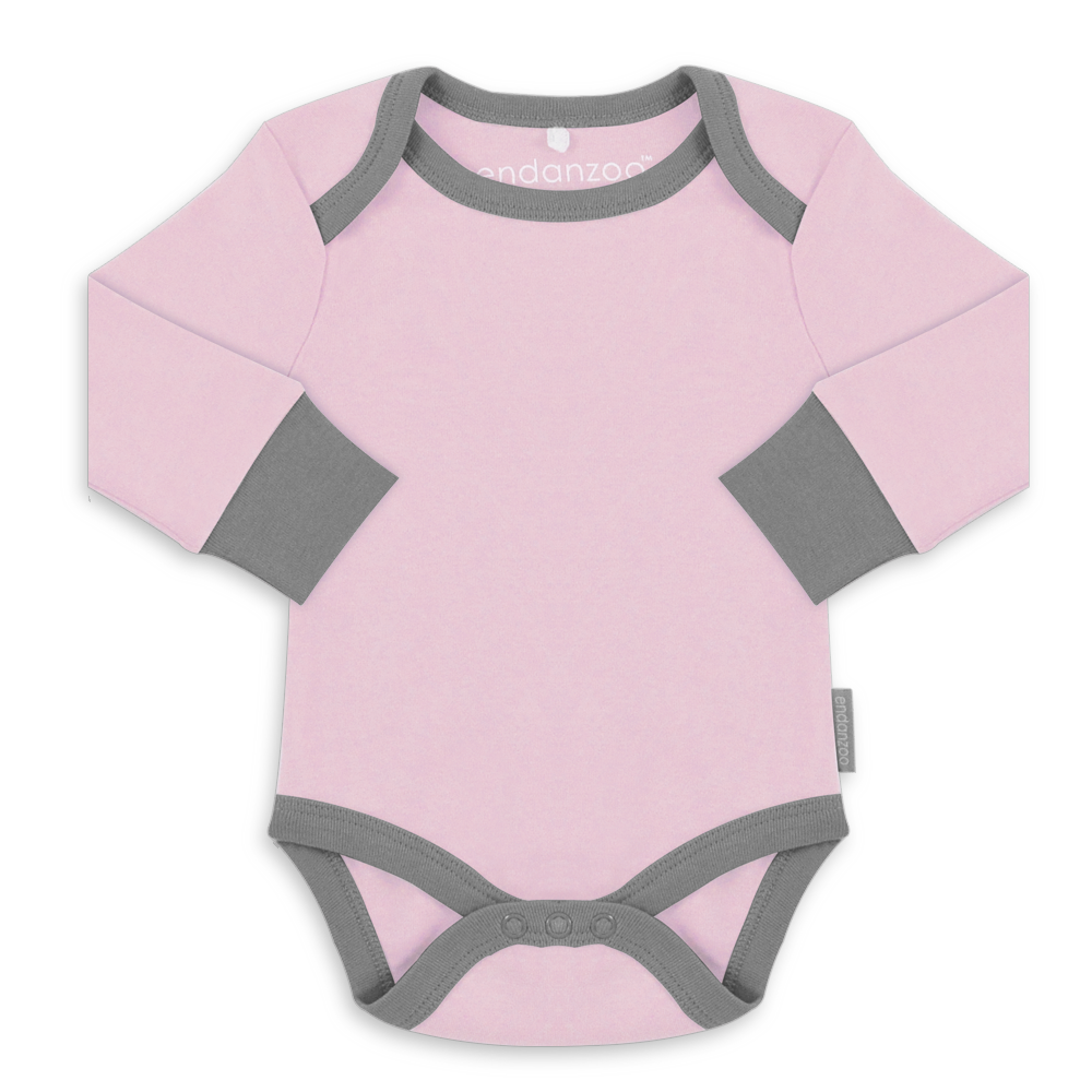 Organic Long Sleeve Bodysuit - Pink w/ grey