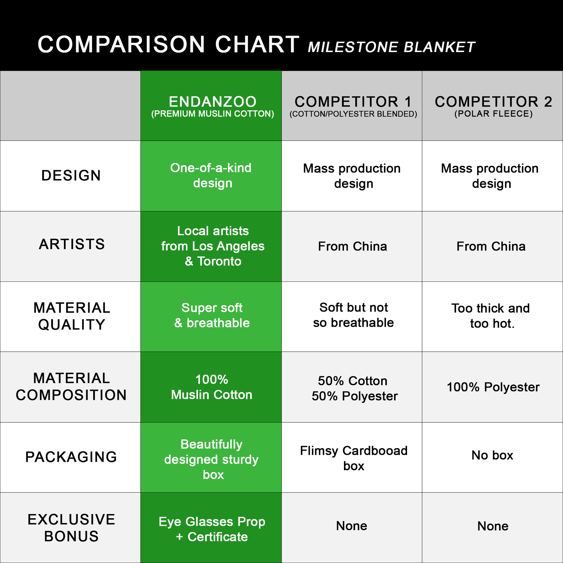 • PUREST & SOFTEST 100% MUSLIN COTTON: Made with premium muslin cotton, this large 50" x 40" baby milestone blanket is super soft, breathable and hypoallergenic. Printed with eco-friendly inks and azo-free dyes.