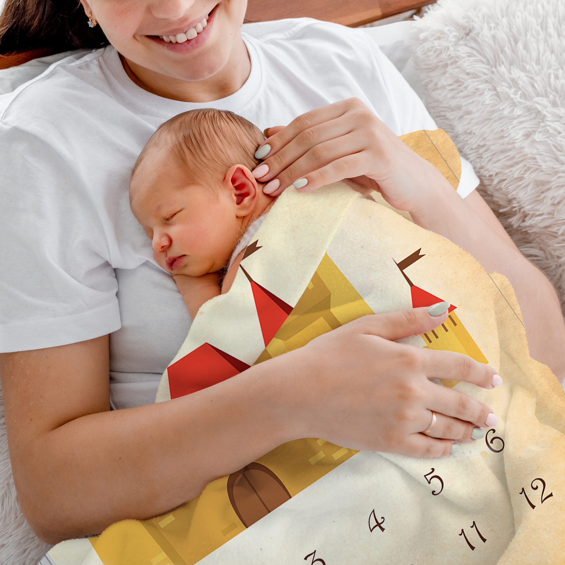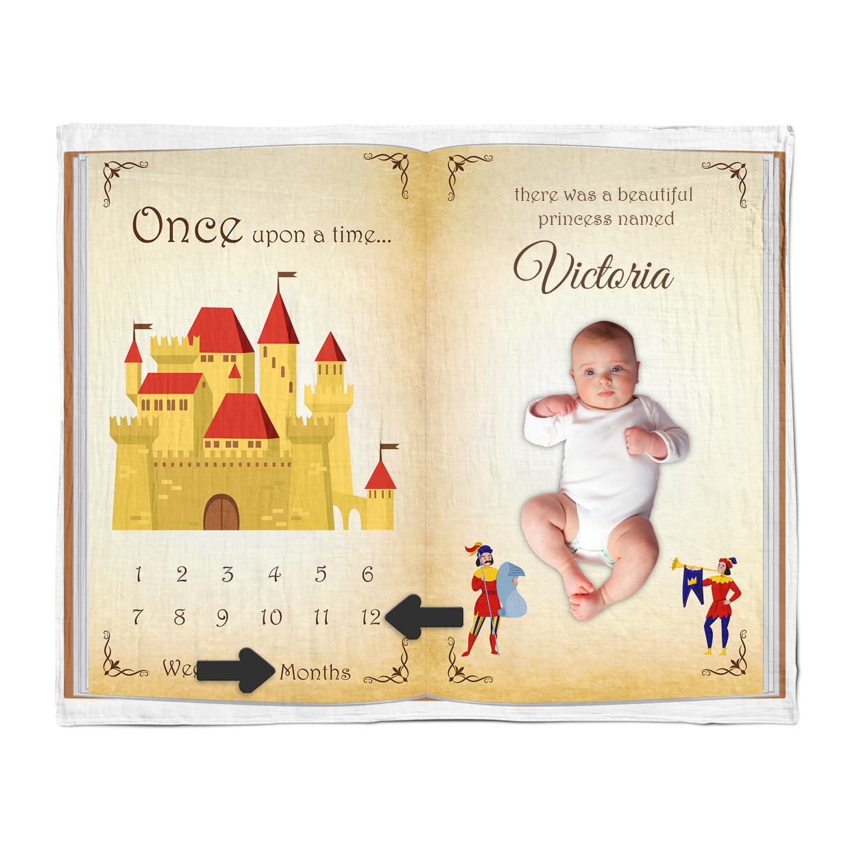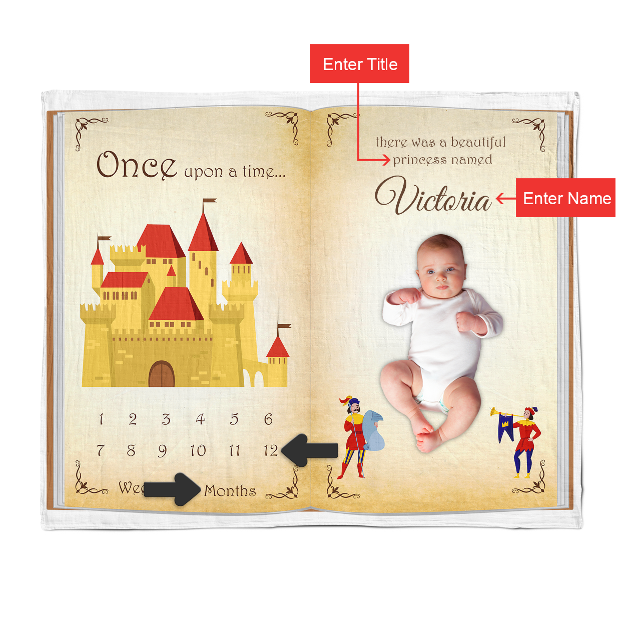 [Personalized] Endanzoo Baby Monthly Milestone Muslin Swaddle Storybook Blanket (Prince or Princess in the Royal Castle)