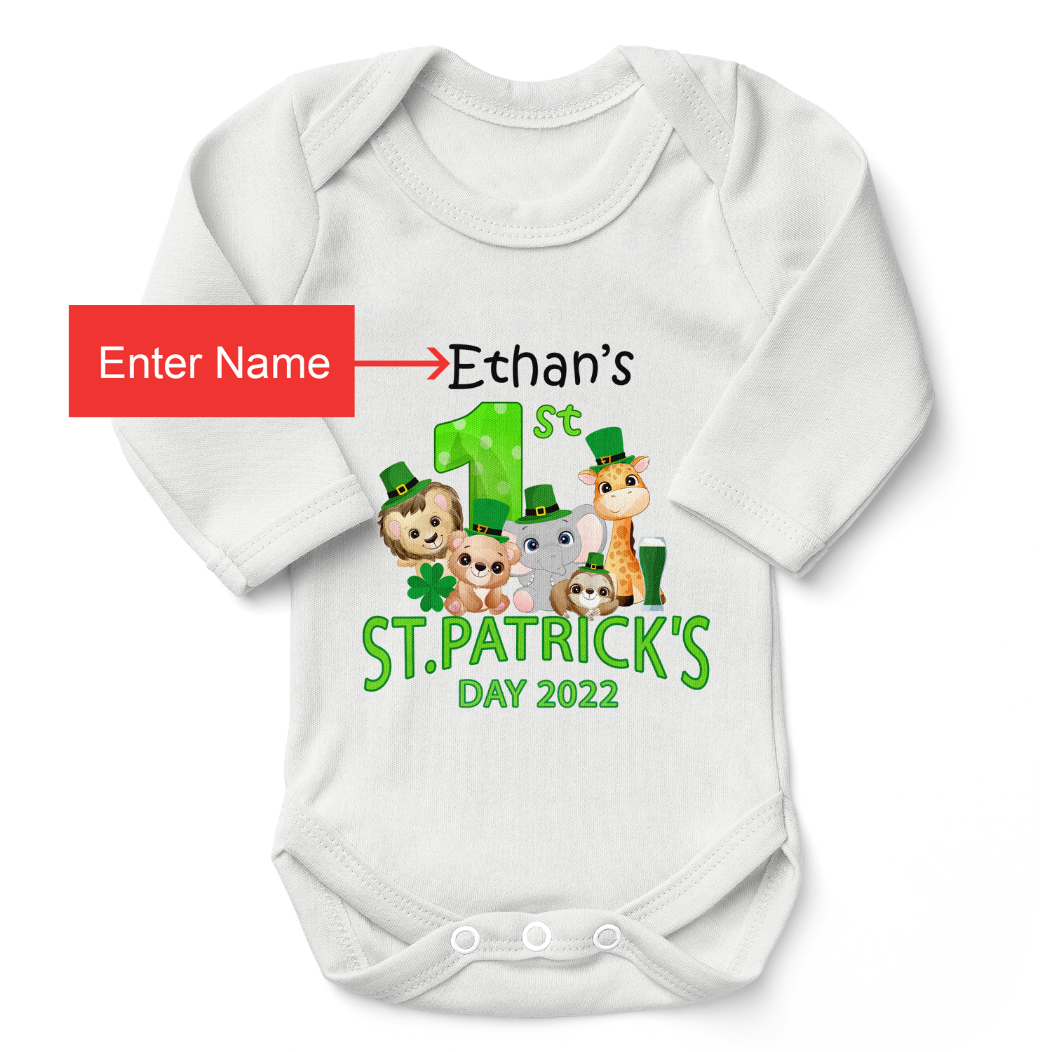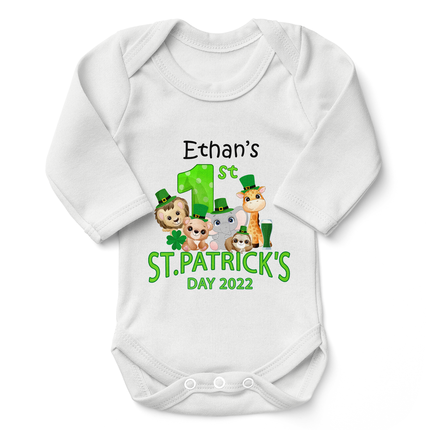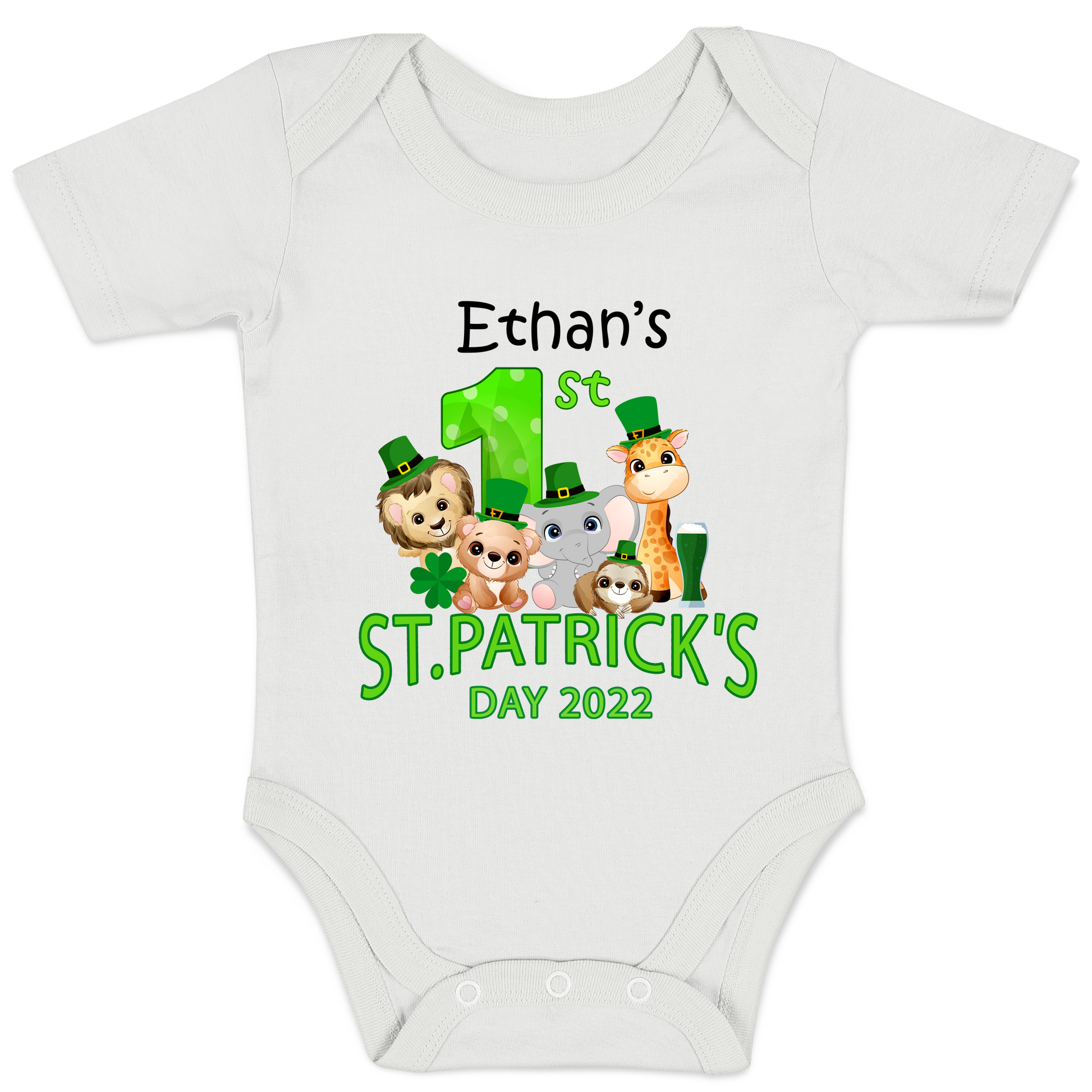 [Personalized] First Saint Patrick's Day Safari Animals Organic Baby Bodysuit