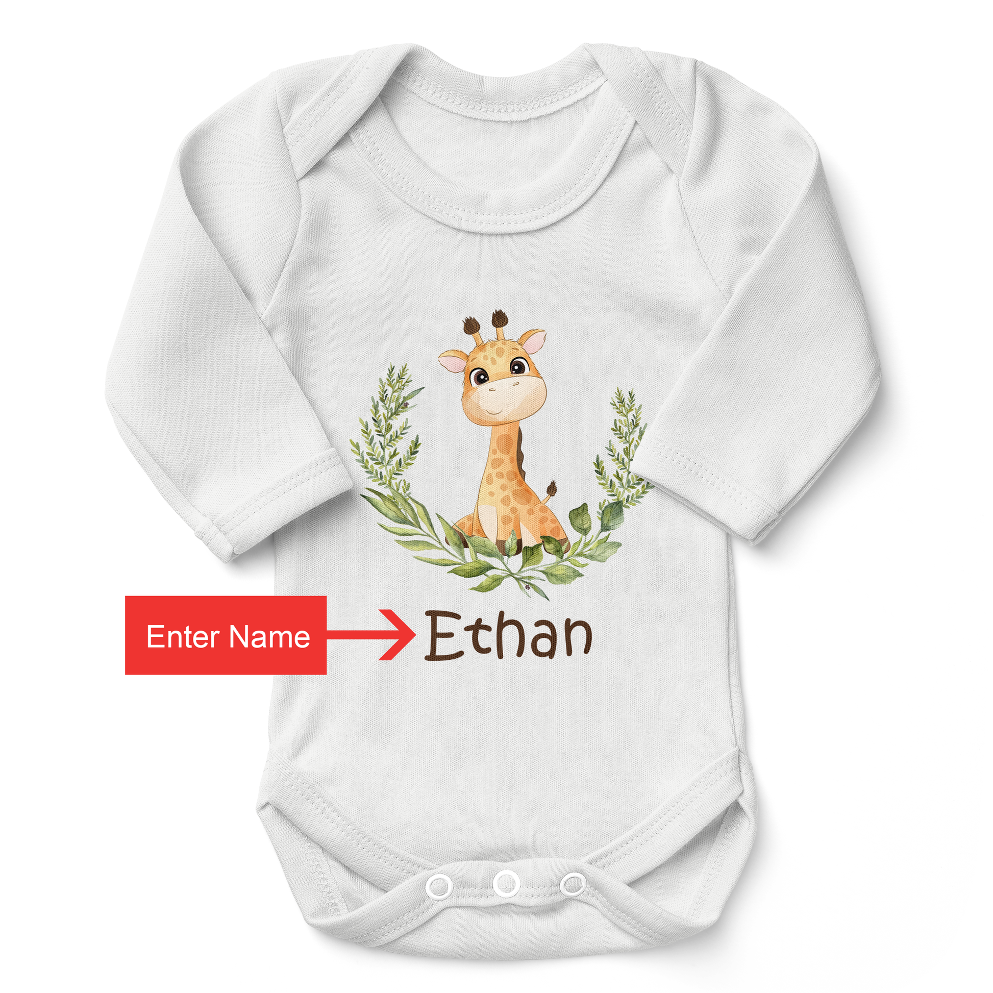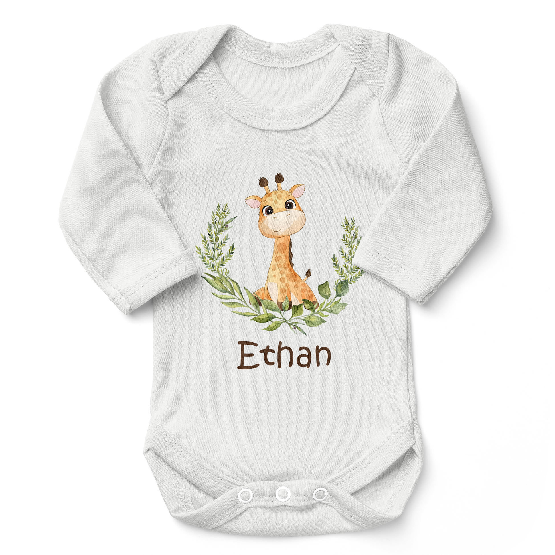[Personalized] Giraffe Organic Long Sleeves Baby Bodysuit