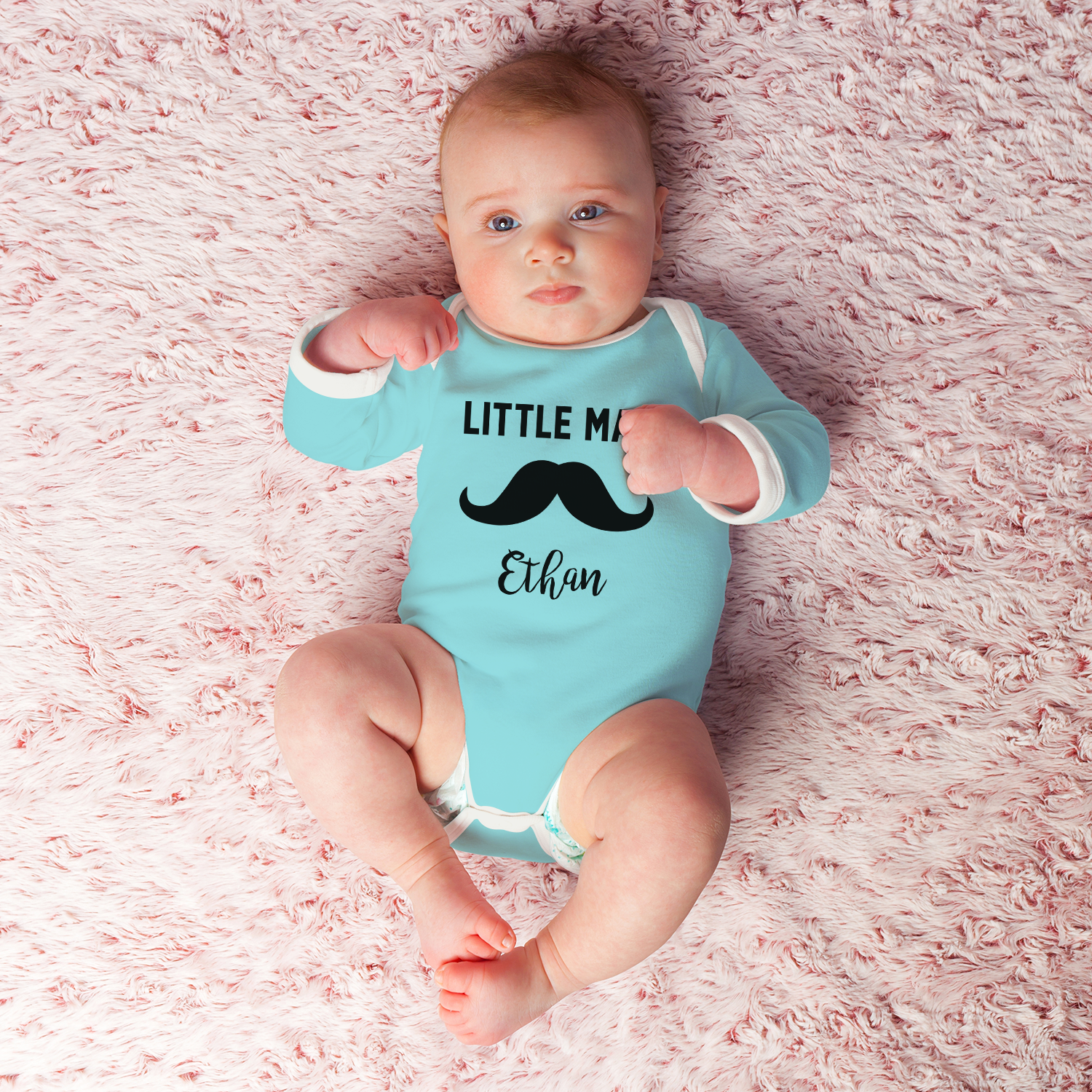[Personalized] Little Man Organic Long Sleeves Baby Bodysuit