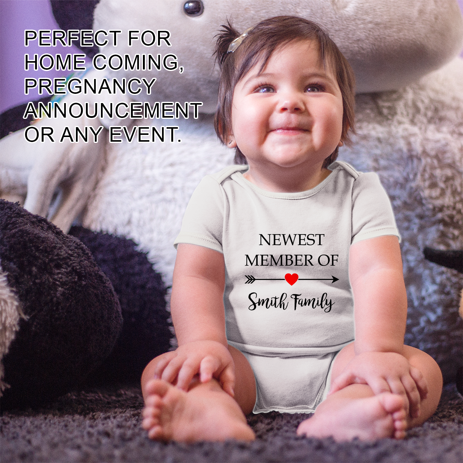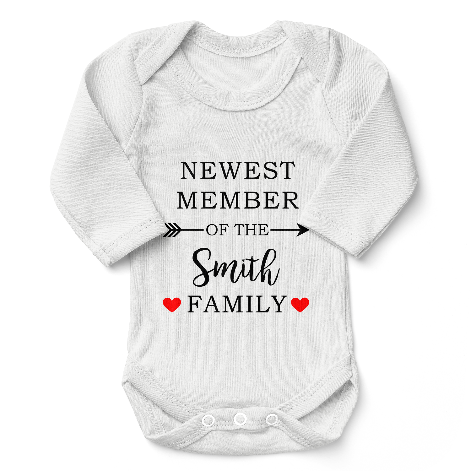Add your baby's name/text to this bodysuit to make it special and unique.