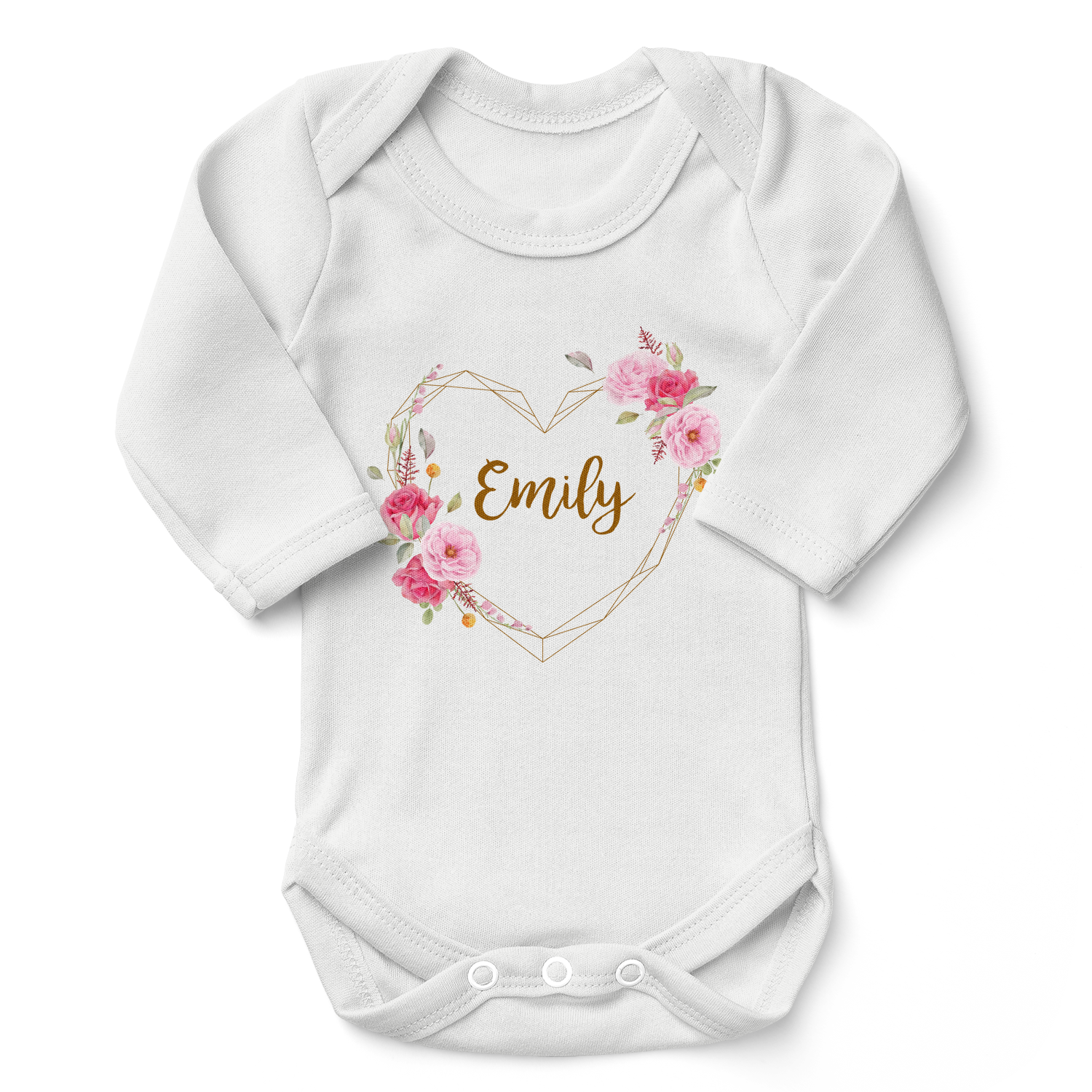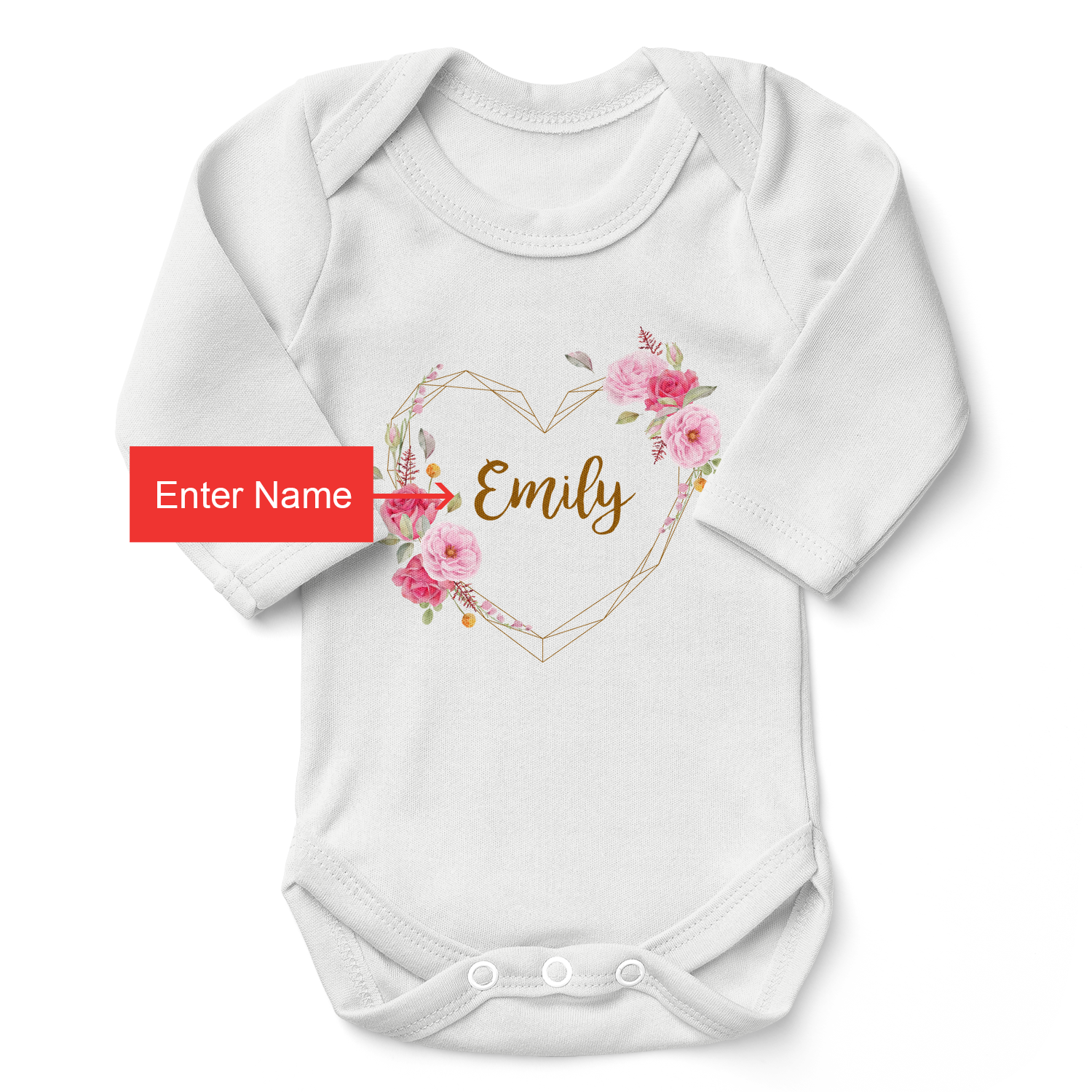 Personalized Organic Long Sleeve Baby Bodysuit - Floral Love