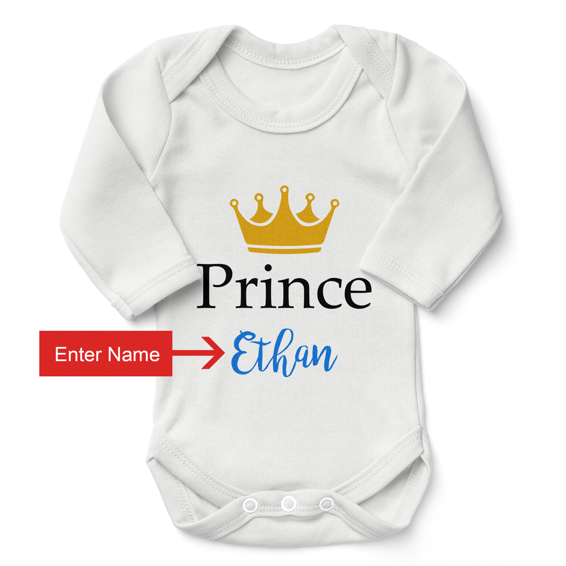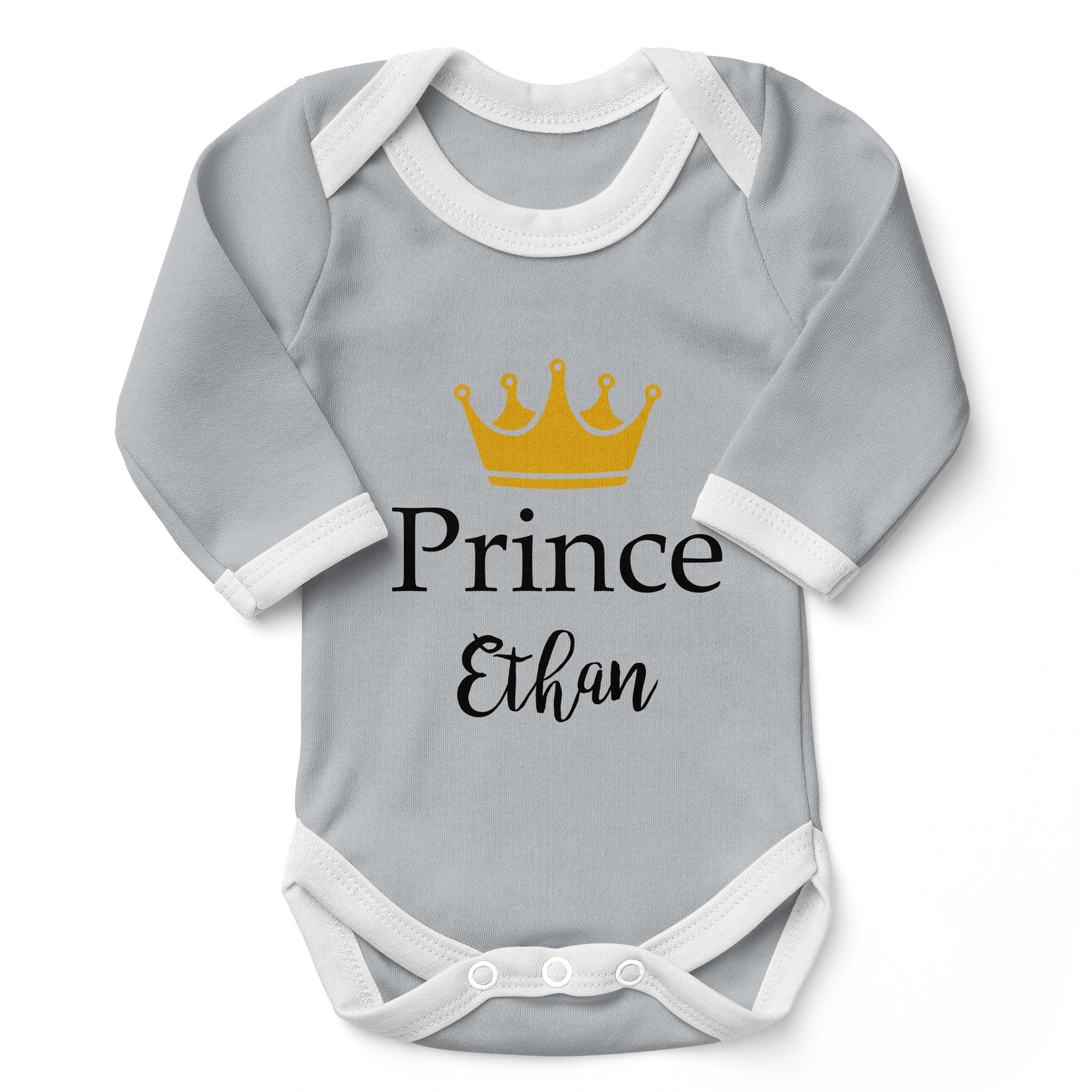 [Personalized] Prince Boy Organic Long Sleeves Baby Bodysuit