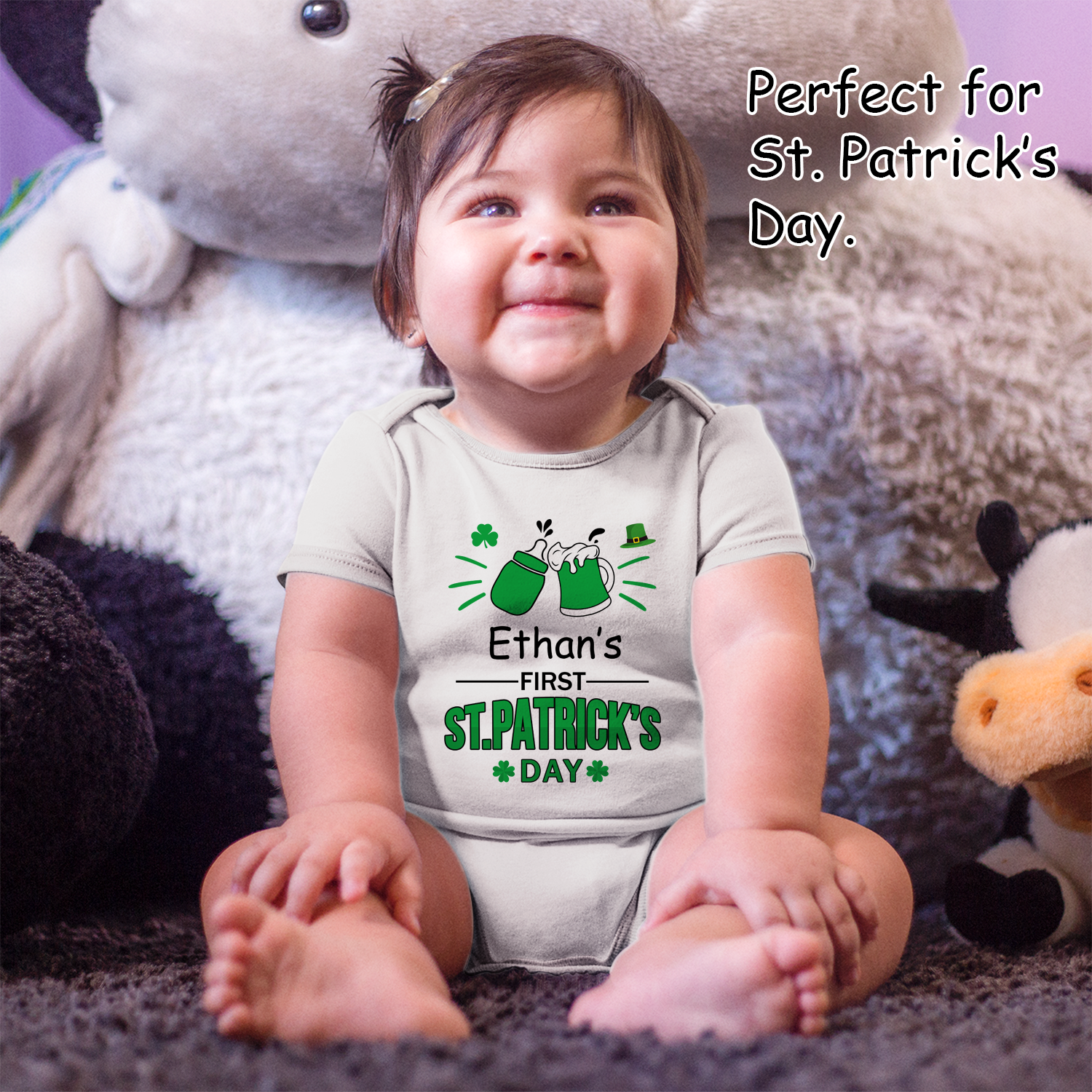 Add your baby's name/text to this bodysuit to make it special and unique.