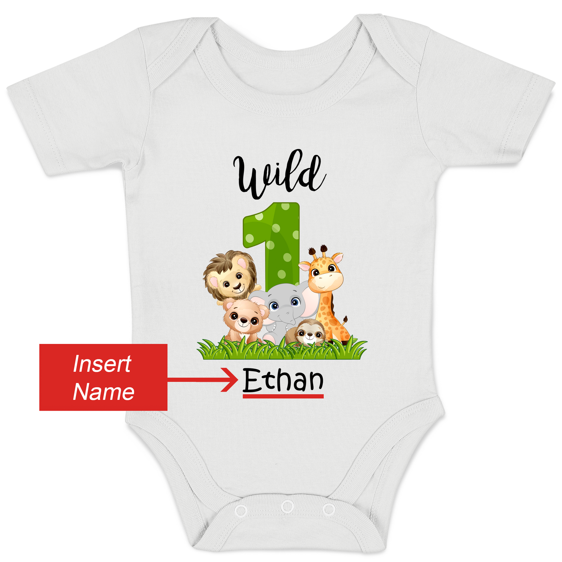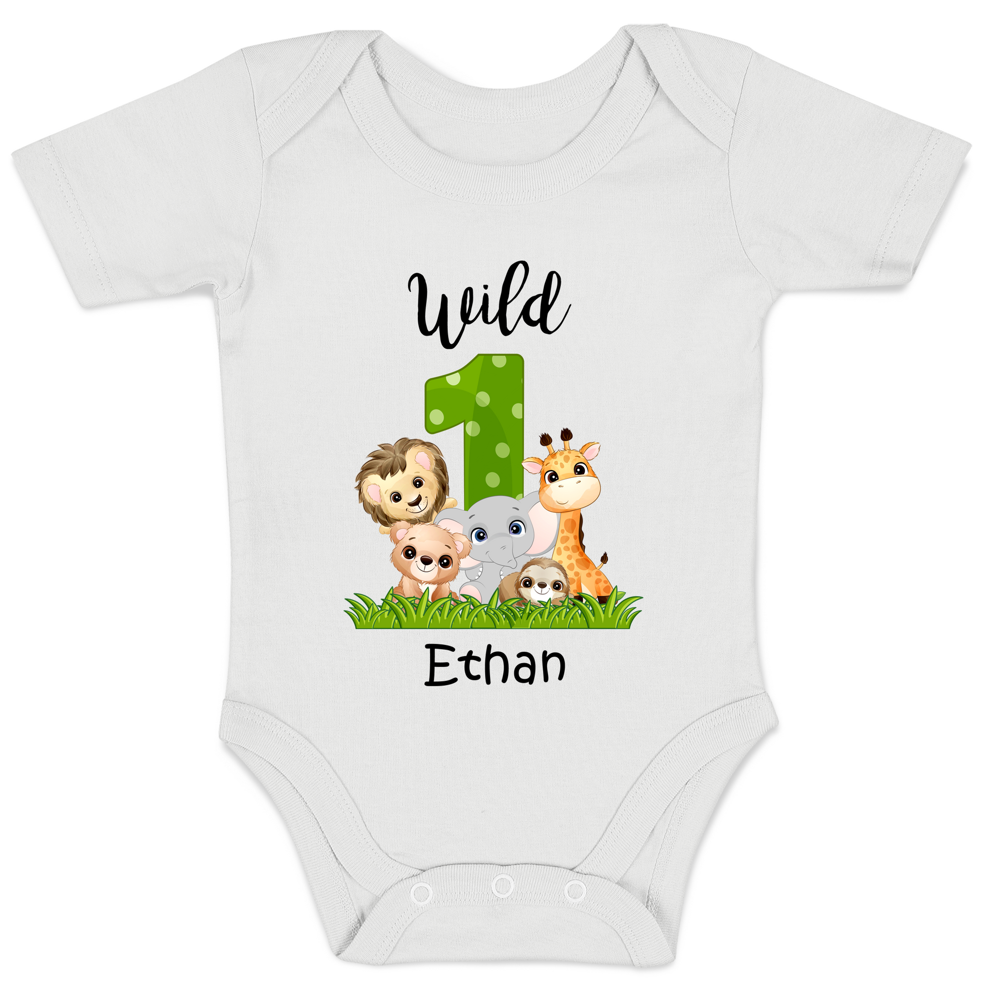 [Personalized] Wild 1 Safari Organic Short Sleeve Baby Bodysuit