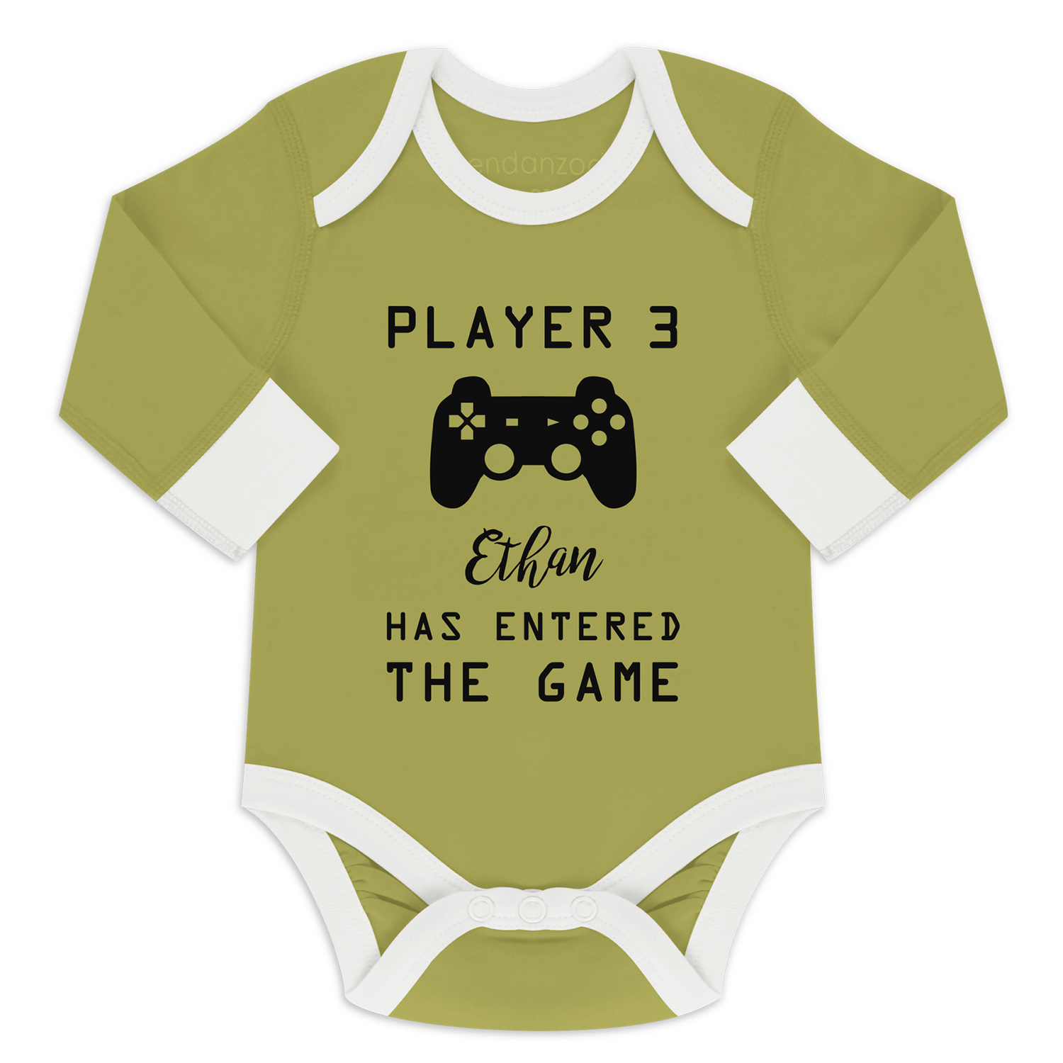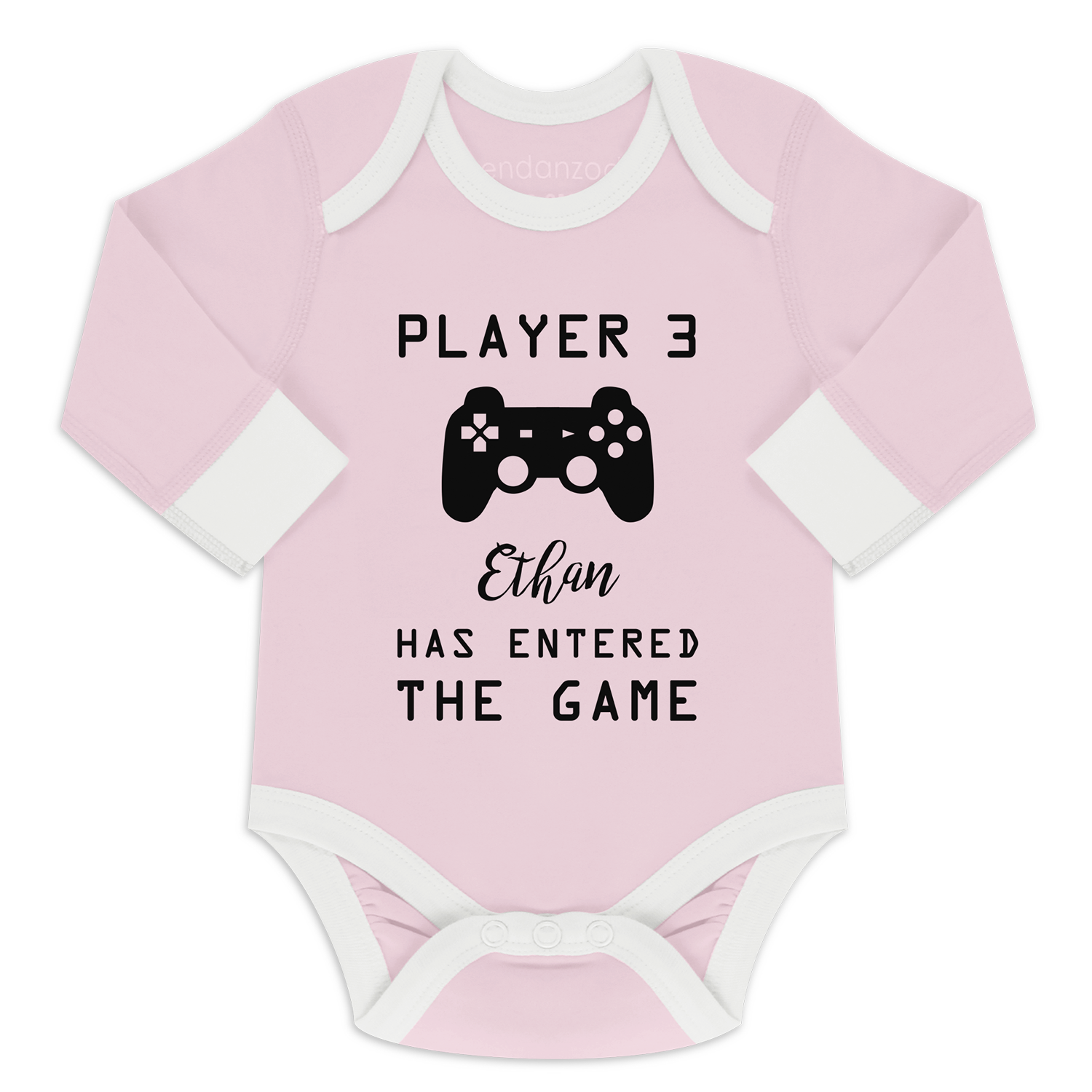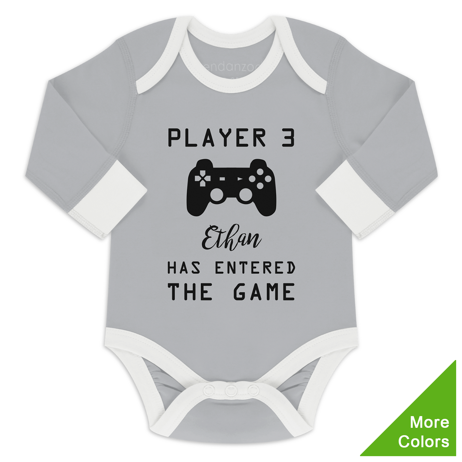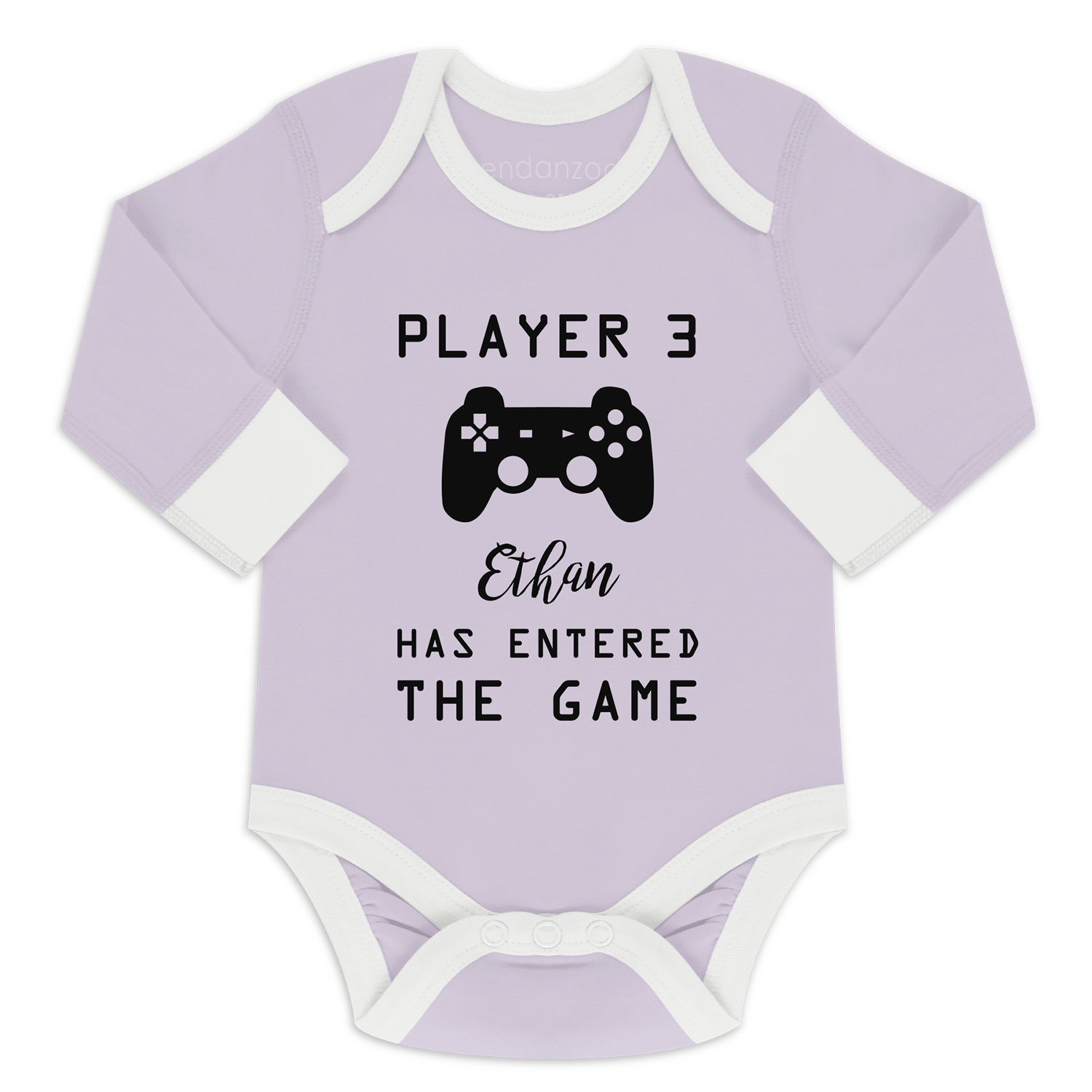 Player 3 Pregnancy Announcement Funny Organic Baby Bodysuit